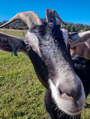 Each goat definitely possesses their own distinct personality and character and ours are cheeky “little’ minxes but very affectionate. They are very loving, loyal and incredibly demanding as well as noisy, especially when it comes to food! They are also extremely smart and curious as well as being excellent escape artists.
